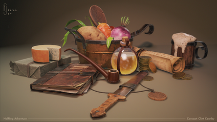 Everything a halfling needs for their next adventure! As a fan of fantasy, I had a lot of fun interpreting this concept into 3D! Big thanks to Clint Cearley for letting me use his awesome concept! With this project, my goal was to practice conveying a variety of materials while keeping everything stylistically cohesive. I used a PBR procedural workflow to get a painterly base quickly and then hand-painted details on top. I really enjoyed this project because each prop posed unique challenges, and it was fun experimenting to get the results I wanted.