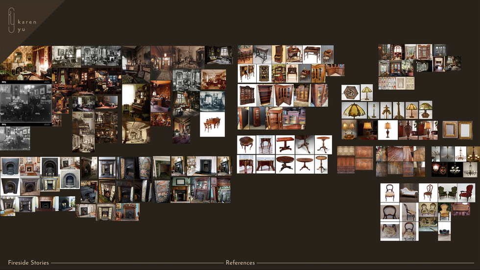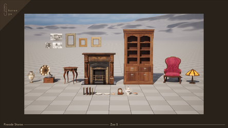 All aspects of the scene were created by me, with the exception of the decorative fireplace tiles, fire effect, and HDRI.